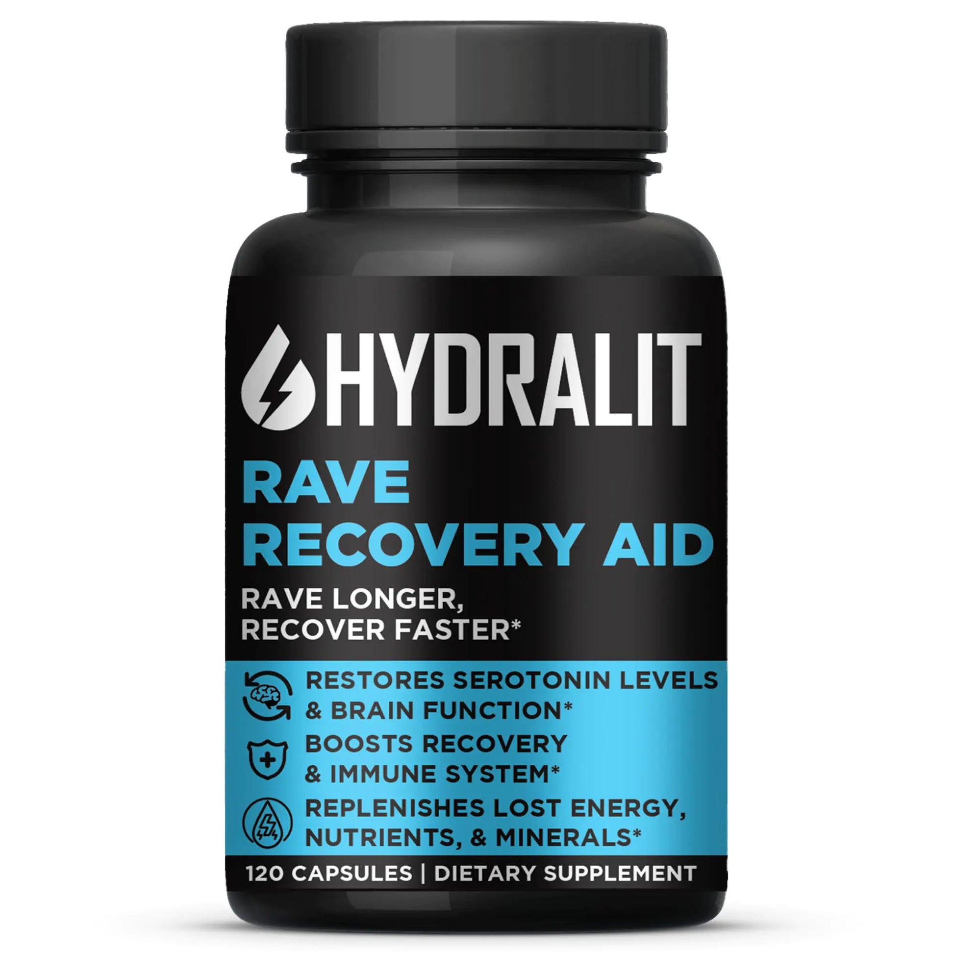 Hydralit Rave Recovery Aid Vitamins After Party Relief Pills Music Festival Accessories Rave Essentials 5-HTP Supplement Electrolytes Hydration Better Mornings Serotonin Energy Hangover 120 Capsules